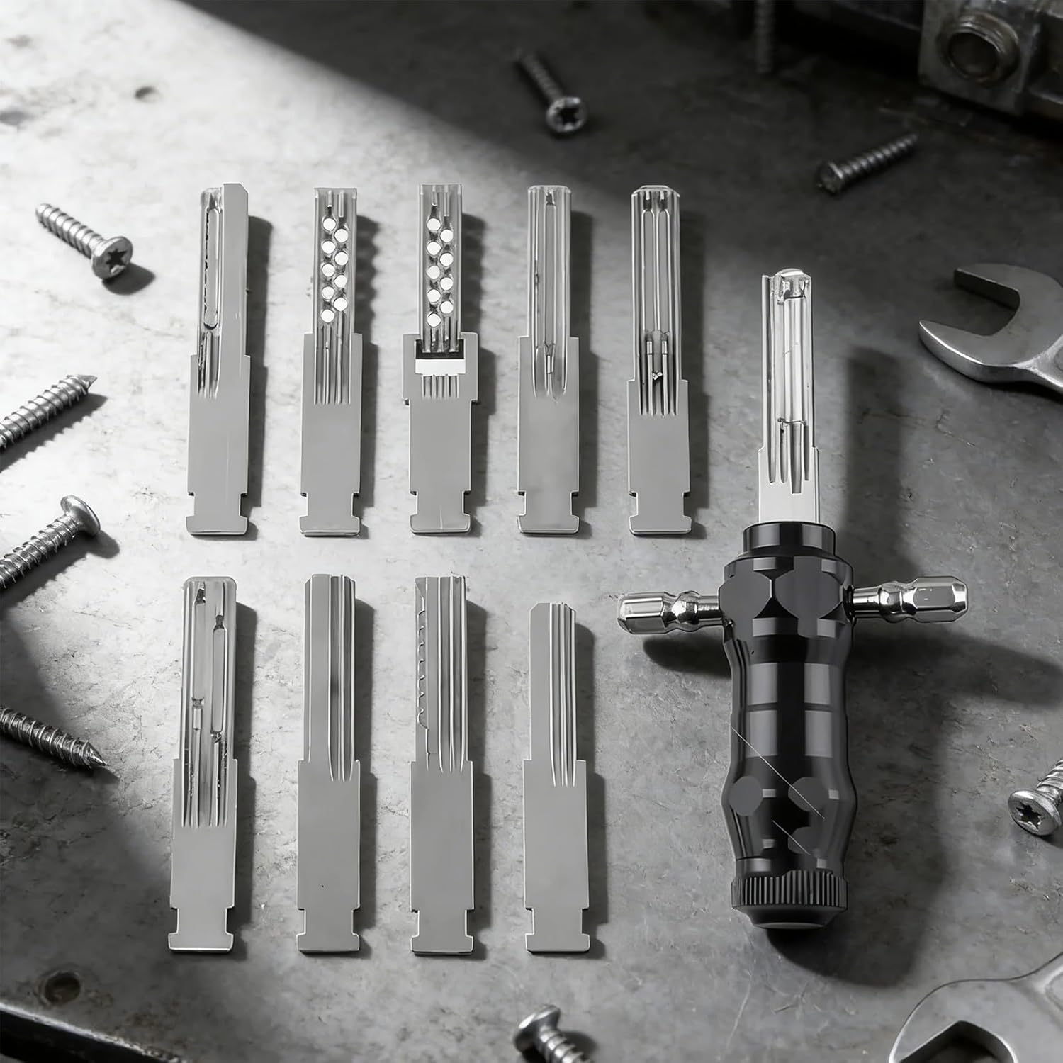 Multi-Lock Compatibility :Comes with 9 interchangeable blades—fits various tubular locks. Unlock different lock types with one set.